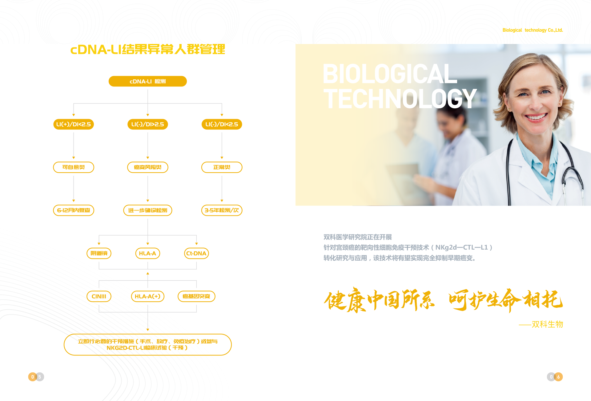 深圳市雙科生物科技有限公司創(chuàng)立于2012年12月12日,是按照國家“十二五”、“十三五”科技創(chuàng)新規(guī)劃、《中國防治慢性病中長期規(guī)劃(2017-2025年)》與《“健康中國2030”規(guī)劃綱要》等政策要求,以“健康中國所系,呵護(hù)生命相托”為公司使命,在“十二五”及“十三五”期間公司先后完成技術(shù)體系建模與試運(yùn)行、服務(wù)體系構(gòu)建與運(yùn)行、腫瘤綜合防控體系建立與實(shí)施,在高新生物技術(shù)領(lǐng)域,形成了具有完全自主創(chuàng)新與獨(dú)立知識產(chǎn)權(quán)的常見腫瘤液態(tài)活檢技術(shù)、體細(xì)胞技術(shù)、醫(yī)學(xué)AI技術(shù)、宮頸癌預(yù)警cDNA-L1技術(shù)、腦卒中早期預(yù)警MTHFR/MTRR技術(shù) 、 N-MDT技術(shù)、“防-控`-保”技術(shù)等和服務(wù)體系。